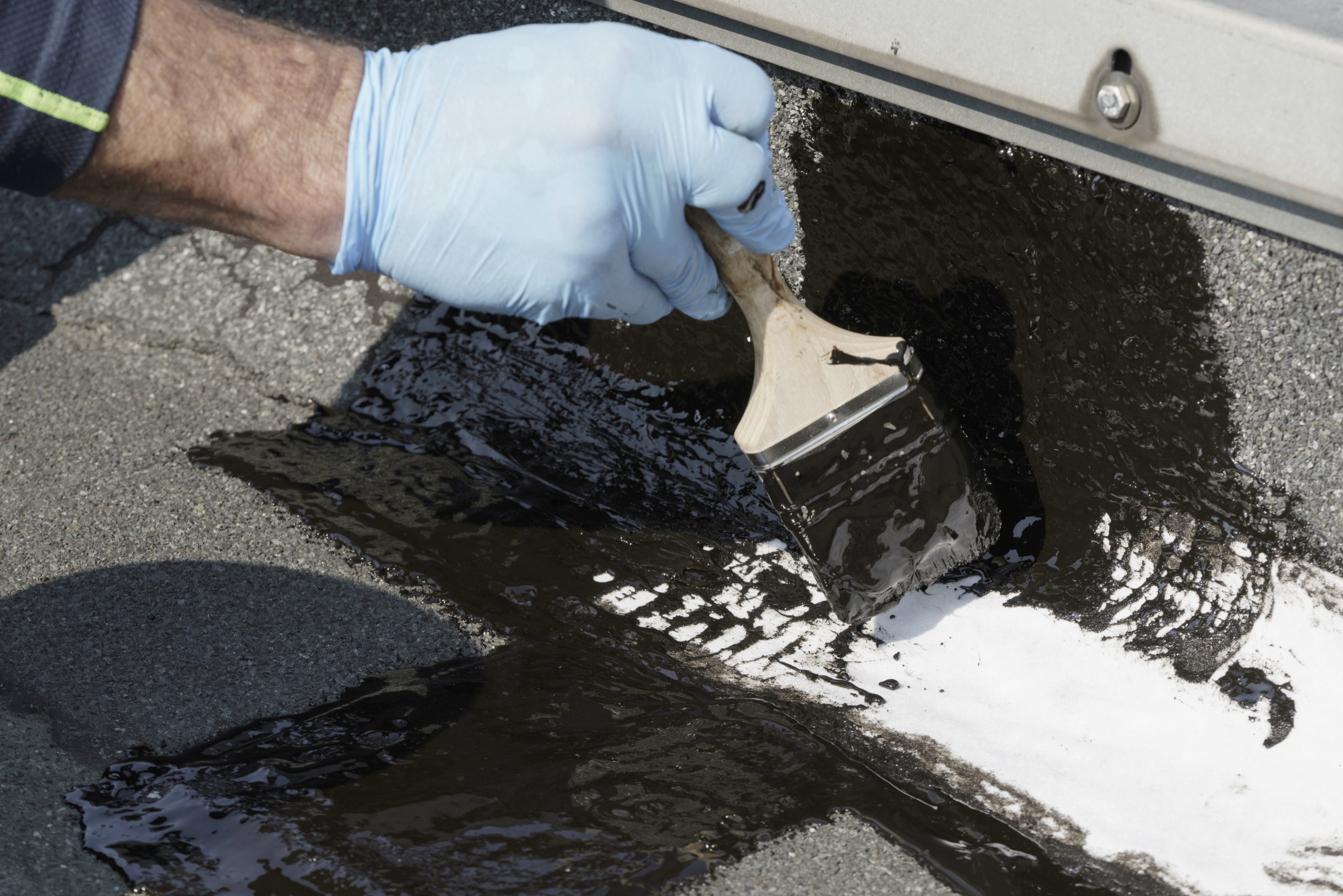 Montaż taśmy: wcisnąć taśmę w świeżo nałożoną żywicę, zapewniając pełne przyleganie.