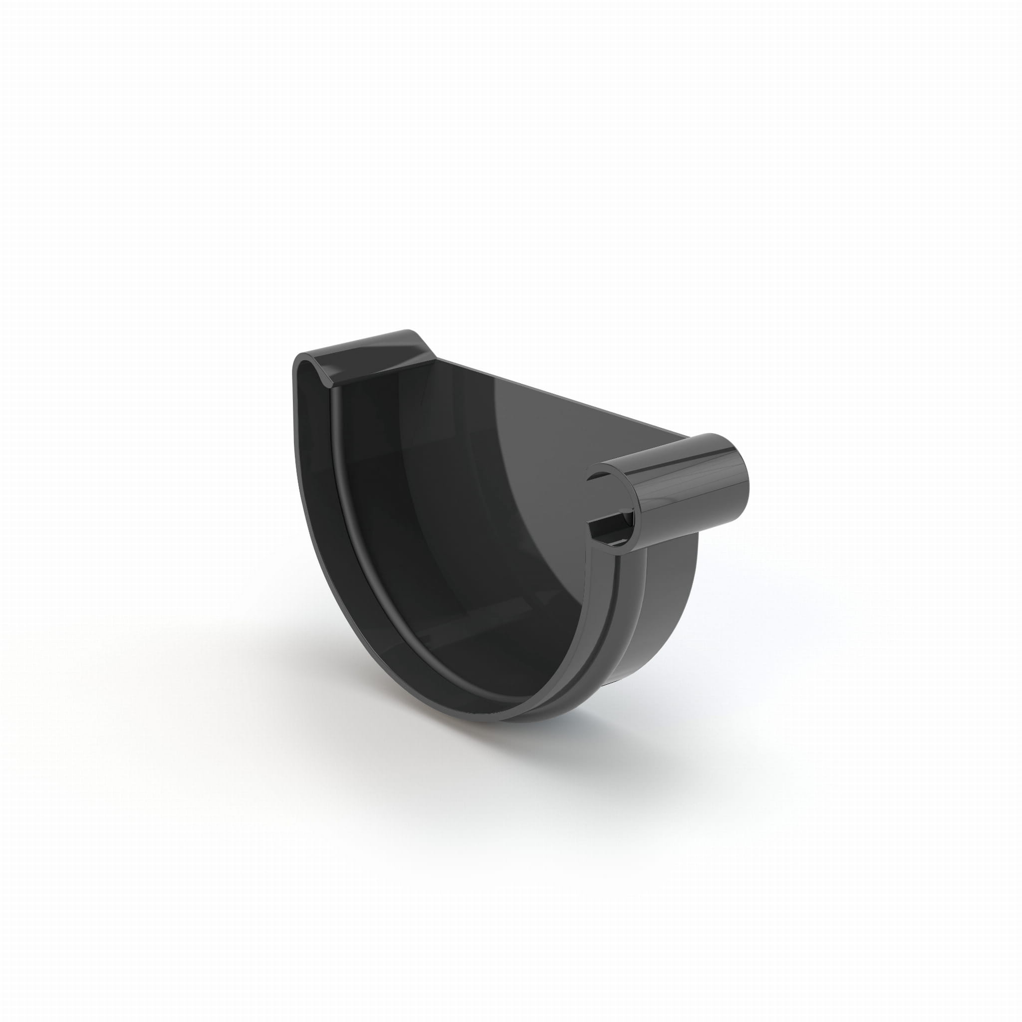 Zaślepka służy do zamknięcia z lewej strony rynien PVC o średnicy 75mm, zapobiega wylewaniu się z niej wody.