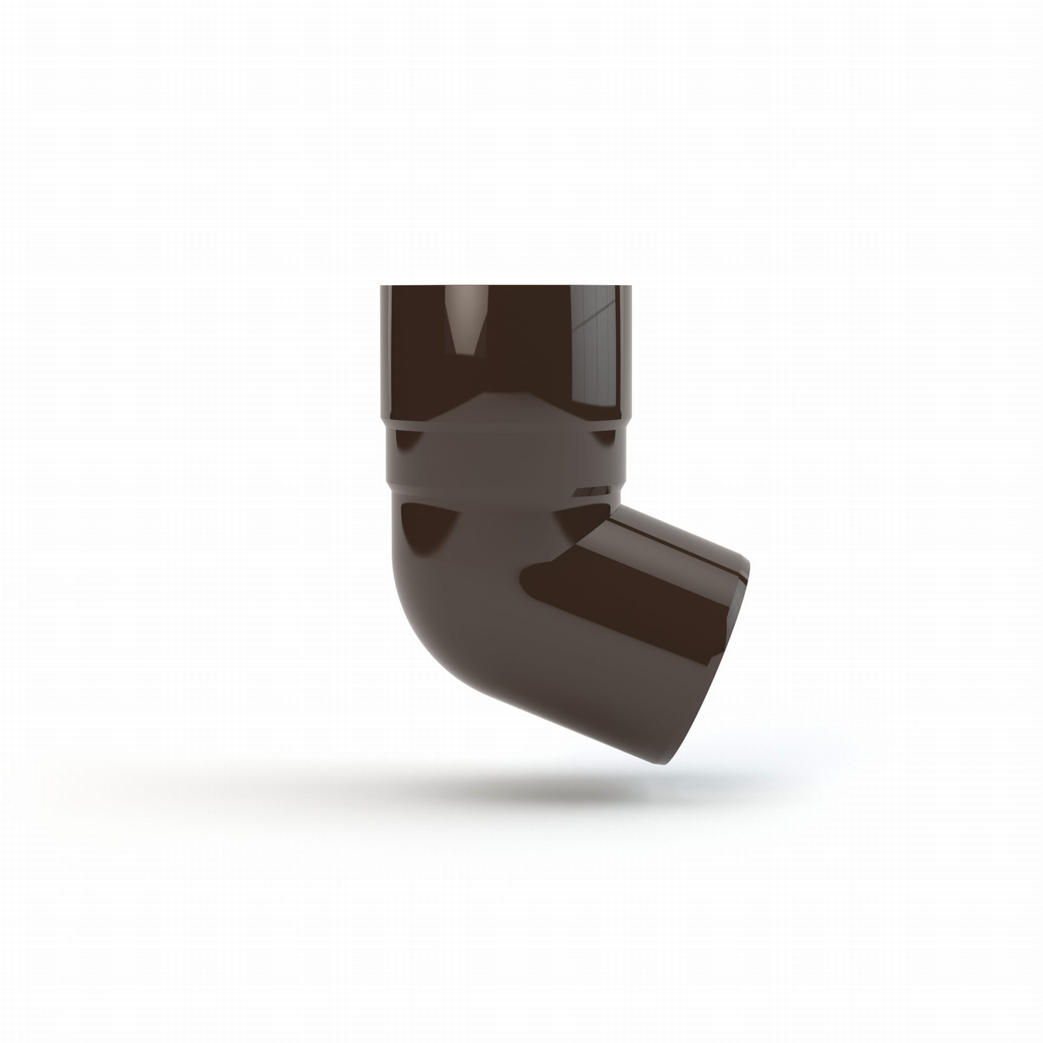 Plastikowe kolano jednokielichowe o średnicy 63 mm firmy Gamrat w kolorze ciemnego brązu. Kąt 67,5 stopnia.